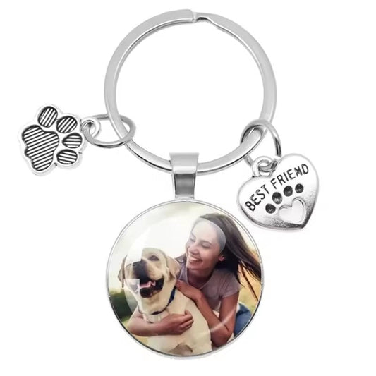 Custom Pet Photo Paw & Heart Keychain